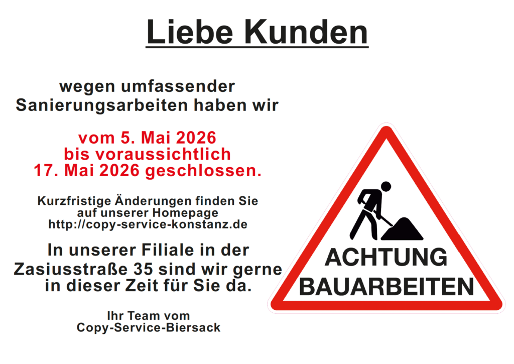 Willkommen bei Ihrem Copy Service Biersack in Konstanz! Seit vielen Jahren sind wir Ihr zuverlässiger Partner für Druck- und Kopierlösungen. Ob für Studierende, Geschäftsleute, Schulen oder Privatpersonen – bei uns finden Sie maßgeschneiderte Dienstleistungen rund um Druck, Kopie und Digitalisierung.