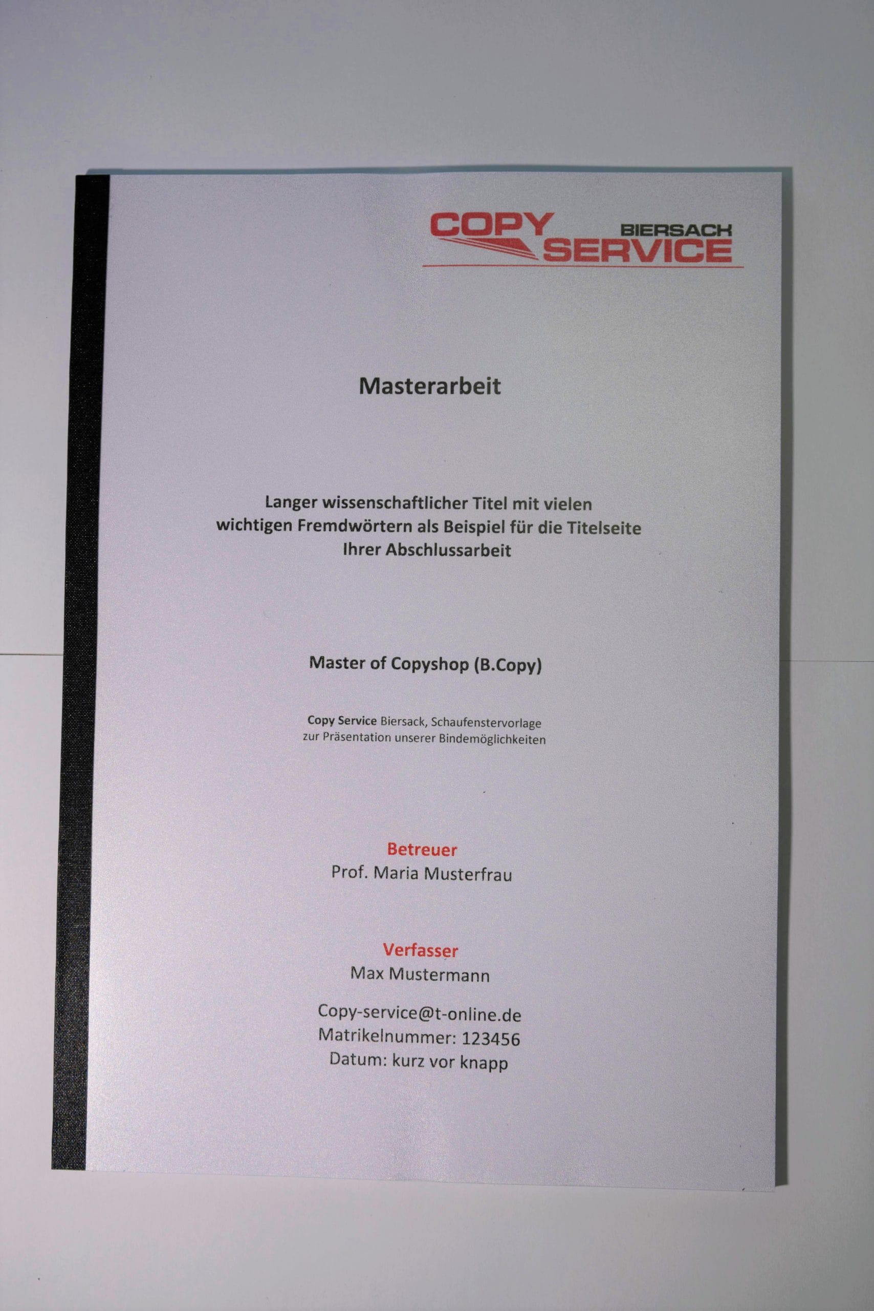„Standard Bindung“ bei Bachelor-, Master-, Diplom-,Doktorarbeiten, Habilitationen oder Dissertationen. Heißleimbindung innerhalb 1-2h oder Kaltleimbindung über Nacht