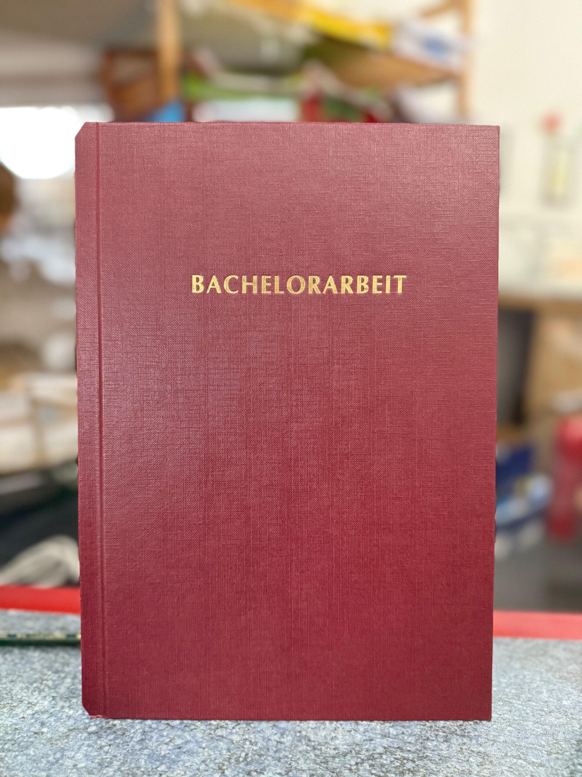Hardcover-Klemmbindungen, drucken und binden z.B. für Bachelor-, Masterarbeit – innerhalb 1 Stunde mit oder ohne Prägung „BACHELORARBEIT“, „MASTERARBEIT“, „PROJEKTARBEIT“ oder „DISSERTATION“ (Die neuen Prägungen sind in Kapitalschrift) auf bordeaux, grün, grau, blau und schwarz wahlweise in Silber- oder Goldbuchstaben